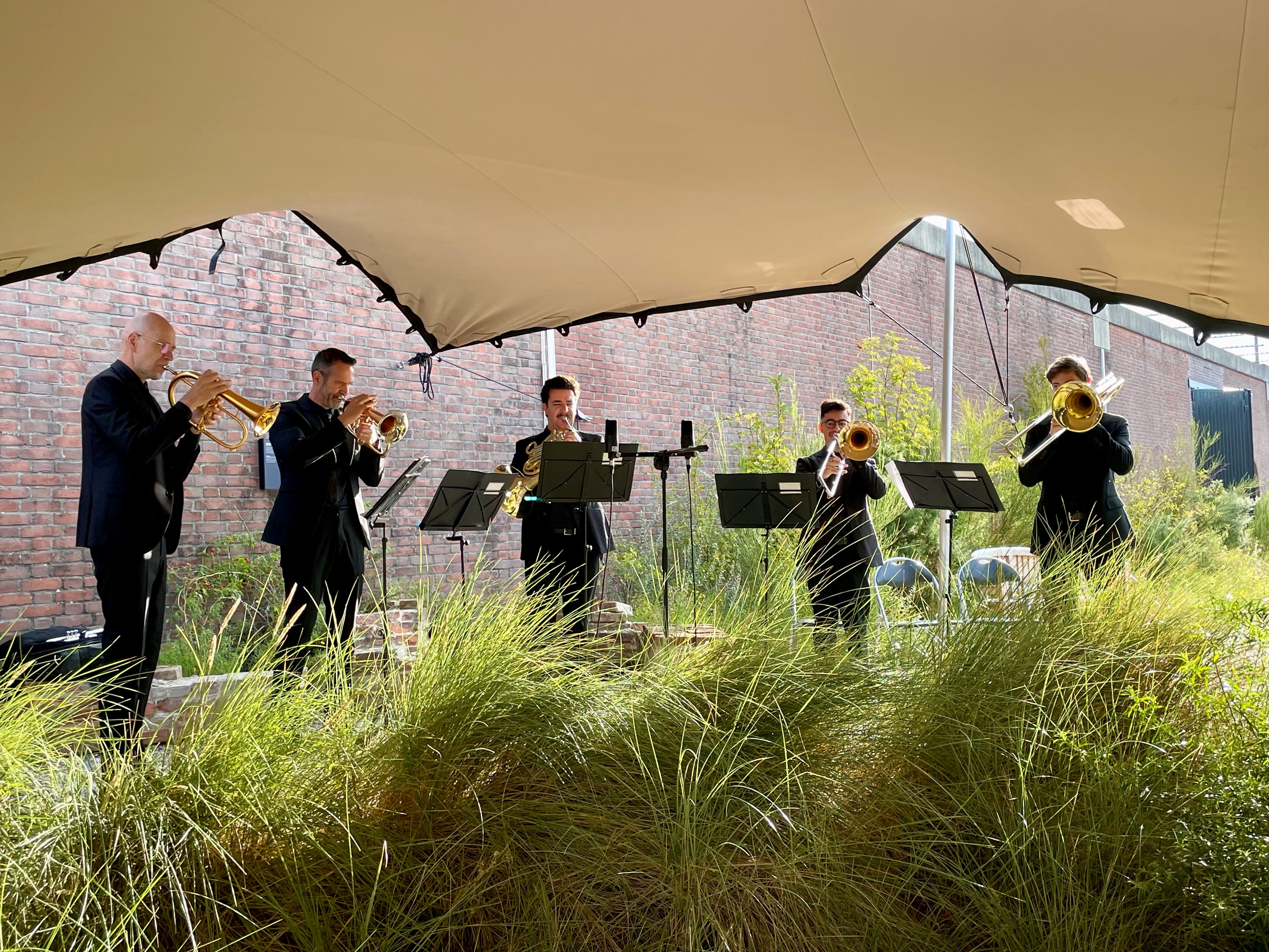 To conclude the annual Just Peace Open Day on Sunday Sept. 21, a brass quintet of the Residentie Orkest performed a unique classical concert in the Amphitheater of the National Monument Oranjehotel. The concert was organized in cooperation with Just Peace, with a message of hope, solidarity, peace and justice.